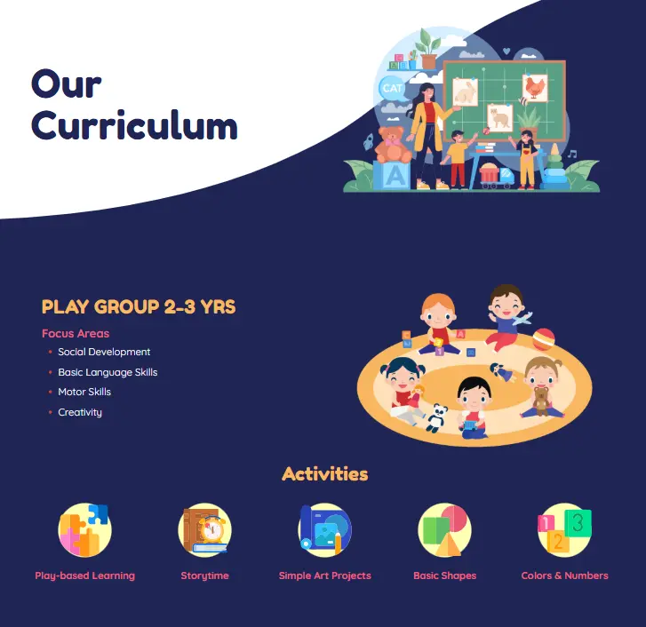 To visually showcase the vibrant classrooms, activities, and events. It builds transparency, attracts parents, and highlights the preschool’s nurturing and engaging learning environment.
