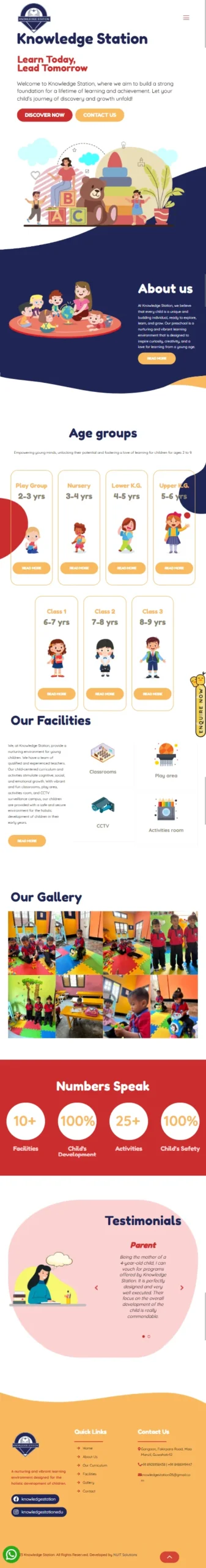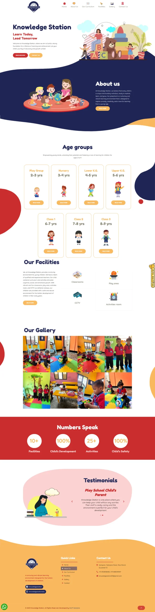 The Knowledge Station website was thoughtfully developed to mirror the preschool’s lively and welcoming vibe. A structured layout highlights age-specific programs, helping parents understand offerings at a glance. The integrated enquiry form streamlines communication and simplifies the admissions process. Real parent testimonials displayed through a dynamic slider help build credibility and trust. A vibrant photo gallery gives visitors a peek into daily activities, learning zones, and facilities. With seamless social media integration, the school now stays better connected with its community and reaches more families online.