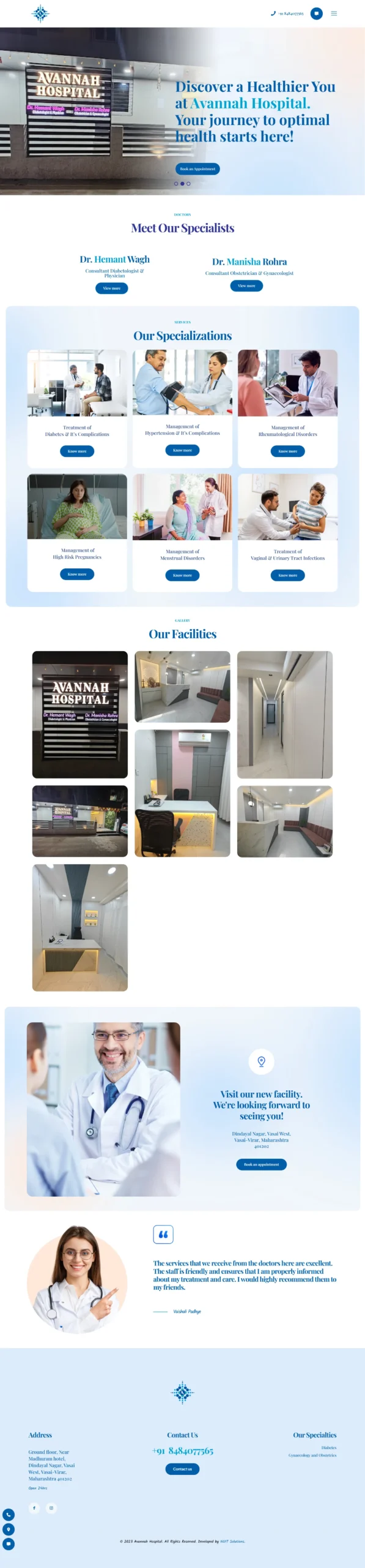 avannahhospital.com is a website developed for Avannah Hospital, highlighting its range of healthcare services with a sleek, professional design. Visitors can browse through a gallery showcasing real patient results, meet the expert specialists, and read heartfelt testimonials. The website features an easy-to-use appointment booking form and integrates sticky social media buttons for continuous connectivity and engagement. With a focus on user experience, intuitive navigation, and high-quality visuals, the site reflects the hospital’s commitment to trusted, patient-centric care.