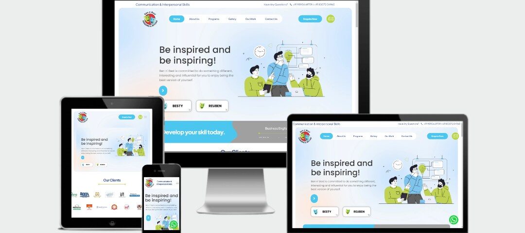 bennbest.com is a portfolio website developed for Reuben and Besty Mathew. With the help of the website, the coaches train people in English speaking, personality development and life skills. The colour scheme, images and icons used make the website very creative and engaging. All information about training and courses are up on the website for the viewers. Latest news and events and updated on the website on a daily basis. All contact information and address using google maps is on the site. The website helps the company to create direct communication and plan and manage regular client meets. You can also place your enquiry by clicking on the ‘ENQUIRE NOW’ button.