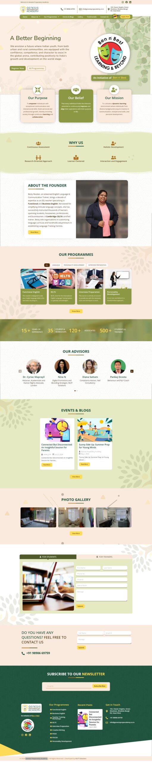 www.genesisprepacademy.co.in is a colorful and attractive platform, designed to provide all vital facts about their programs and courses. With an innovative use of color schemes, images, and icons, the website captures the essence of the academy's dynamic technique. Visitors can stay updated with the latest information, events, and exact contact data, including a Google Maps integration that ensures smooth navigation to the academy. The website additionally enables direct communication and regular customer conferences. The visitors can easily post inquiries via the distinguished 'ENQUIRE NOW' button, making the Genesis Preparatory Academy a consumer-friendly and green academic hub.
