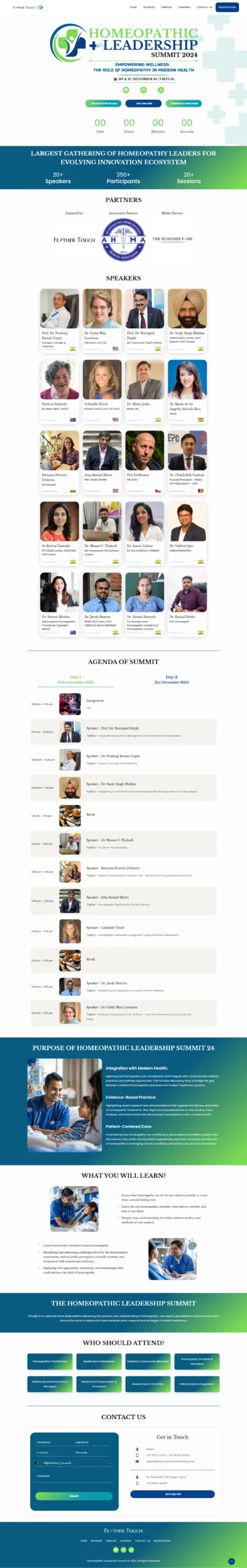 homeopathicleadershipsummit.com is a wesbite developed for Homeopathic Leadership Summit, having a dynamic and engaging single-page website developed for the Homeopathic Leadership Summit 2024, designed to deliver a seamless browsing experience. The website prominently displays all speaker profiles with their images and designations, offering clear insights into their expertise. The purpose of the summit, detailed sections on who should attend, and key takeaways are strategically organized to enhance user engagement. The inclusion of high-quality visuals, smooth navigation, and sticky social media buttons at the bottom allows visitors to share and connect effortlessly. An intuitive layout, informative content, and a dedicated registration form make the website user-friendly and efficient. Tailored for modern users, it combines a professional look with interactive features to provide a complete and immersive experience.
